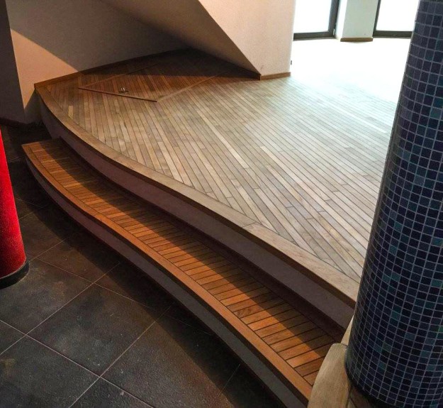 Das Teakholz ist ein ideales Material für die Herstellung einer Außenterrasse und ihrer Härte.